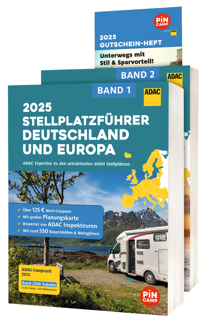 Stellplatz in ganz Europa finden – dafür steht der ADAC Stellplatzführer mit rund 6.000 Wohnmobil-