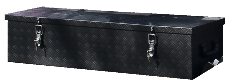 Solide Ausführung aus Aluminium-Riffelblech, pulverbeschichtet, abschließbar durch 2 Schlösser, schwarz.