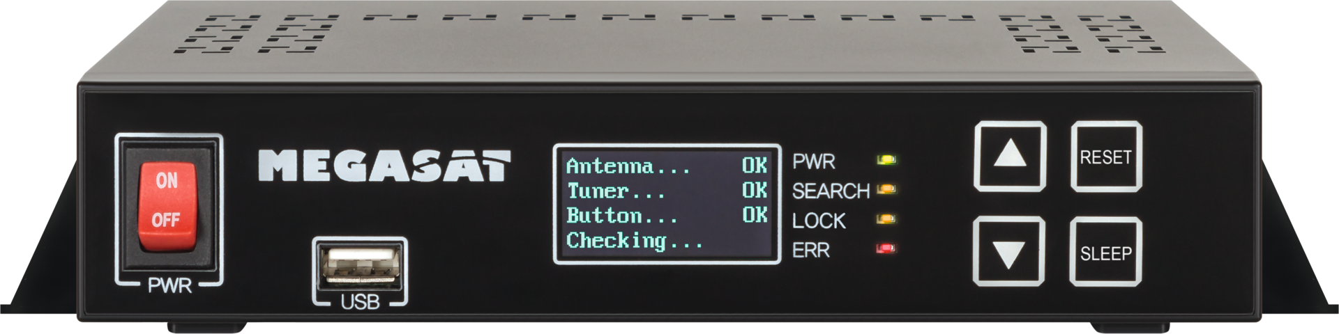 Einfach Knopf drücken und Fernsehen – Das Steuergerät ist programmiert für verschiedene Satelliten. Nach dem Einschalten müssen Sie nur einen Knopf drücken um vollautomatisch Satelliten-Fernsehen zu empfangen.
