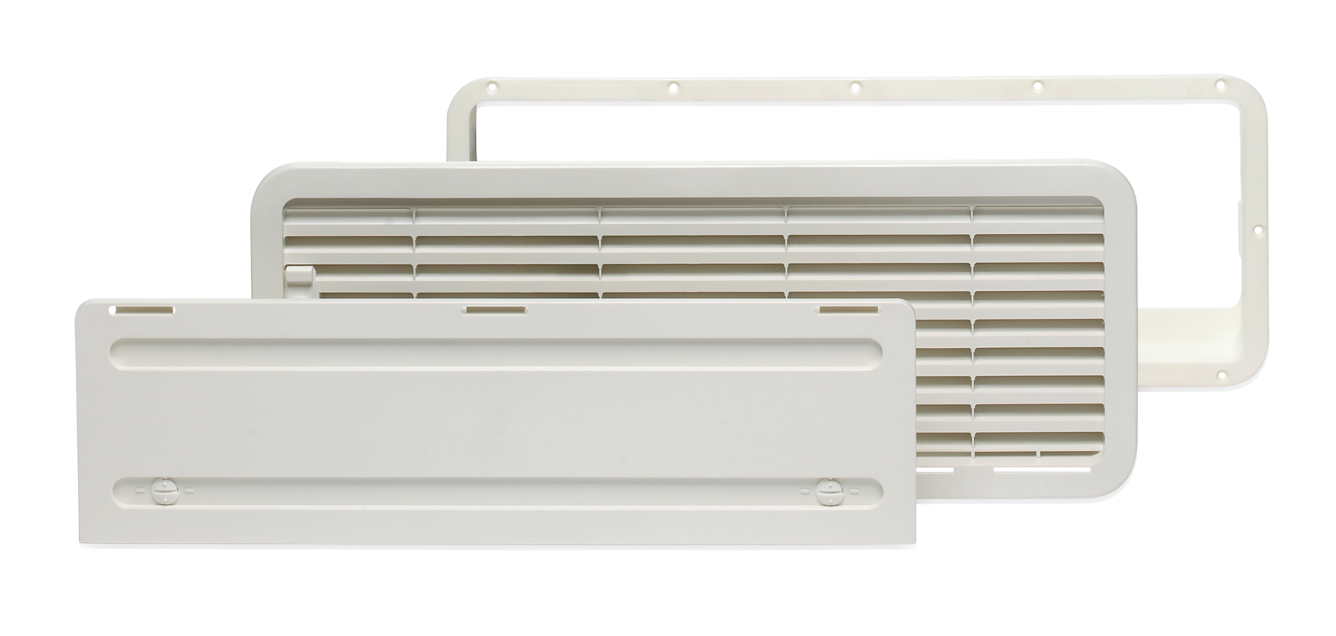 Spezielle Lüftungssysteme zur Montage an der Fahrzeugaußenwand. Entwickelt für die Vermeidung von Hitzestau hinter dem Kühlschrank. Für Eintürer sind die Gitter LS 100 (für oben) und LS 200 (für unten) erforderlich. Das LS 300 für Zweitürer kann oben und unten verwendet werden.