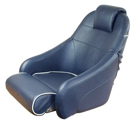 Wichtige Herstellerangaben: Flip-Up Bootssitz in Marineblau mit weißer Kedernaht oder weiß mit Marineblauer Kedernaht. Der vordere Teil der Sitzfläche kann zum Steuern im Stehen hochgeklappt werden. Auf der Rückseite der Rückenlehne befindet sich ein kleines , mit Gummizug gesichertes, Staufach.