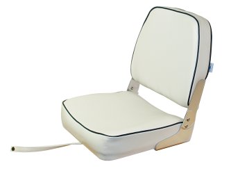 Bootssitz klappbar weiß mit blauen Streifen gehört zur Kategorie klassisch und unterstützt die dort typischen Ausrüstungs- und Montageaufgaben an Bord.