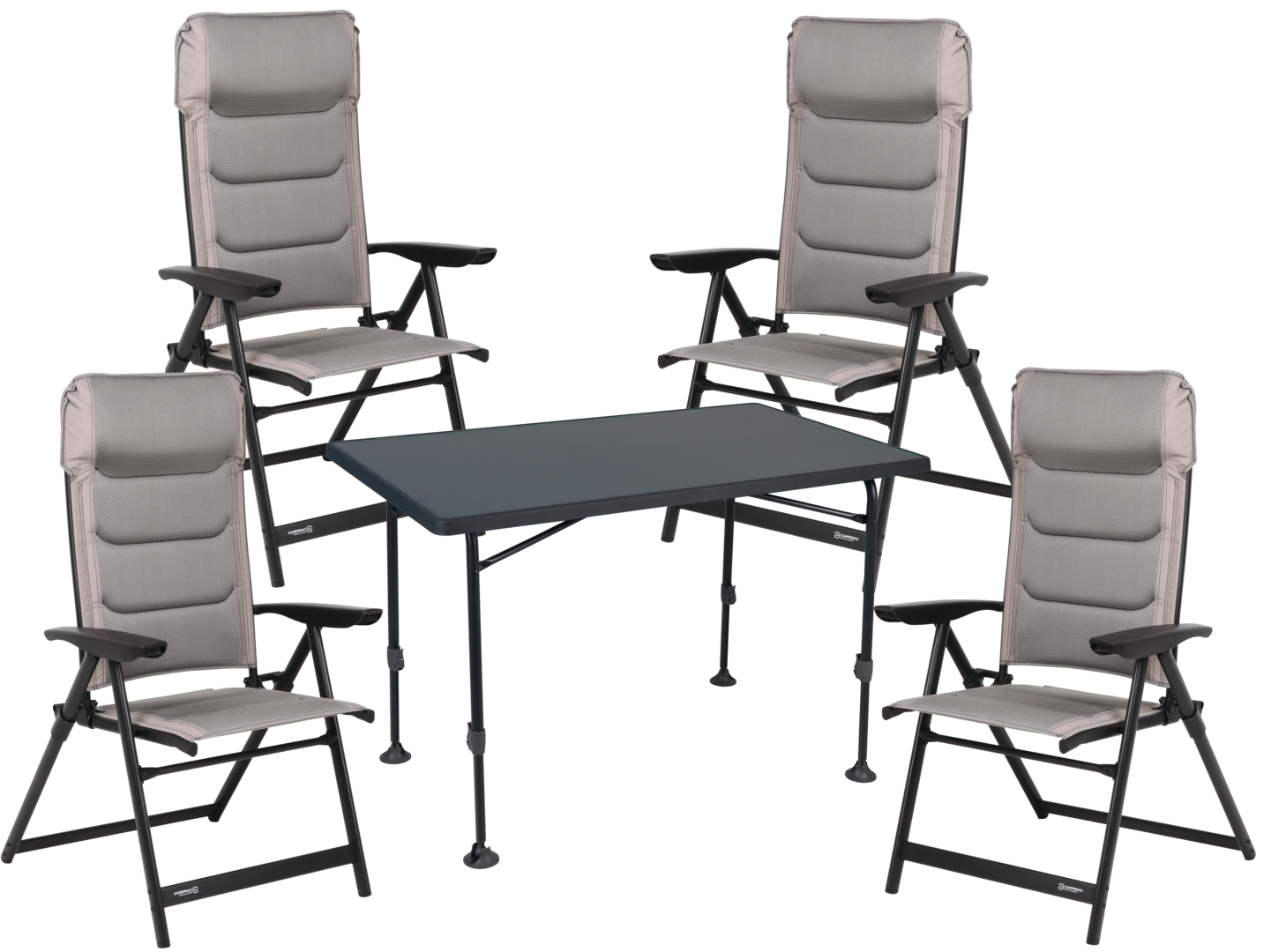 Set bestehend aus 4 x Sessel CAMPERDICE Evolution in grau (Nr. 22103) und 1 x Tisch CAMPERDICE Evolution 120 (Nr. 21199)