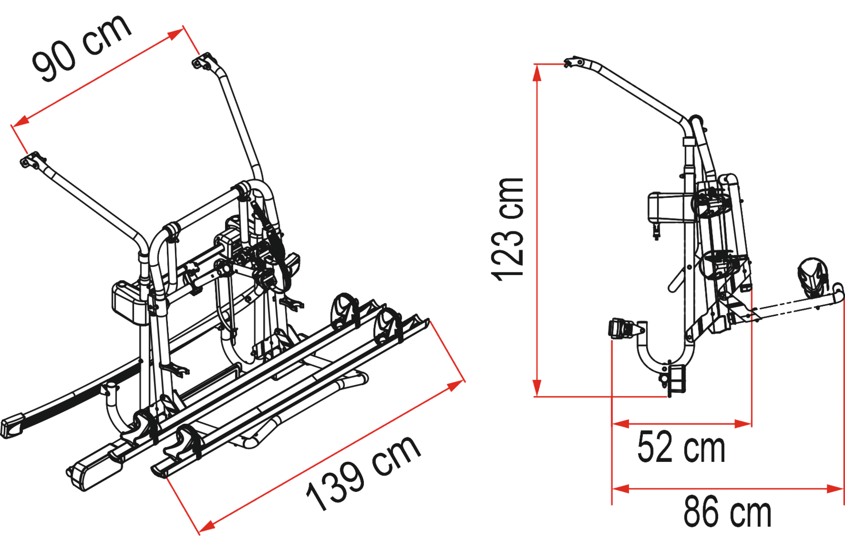 Serienmäßig mit Kennzeichenleiste mit Lichtgruppe. Für den Transport von zwei E-Bikes.