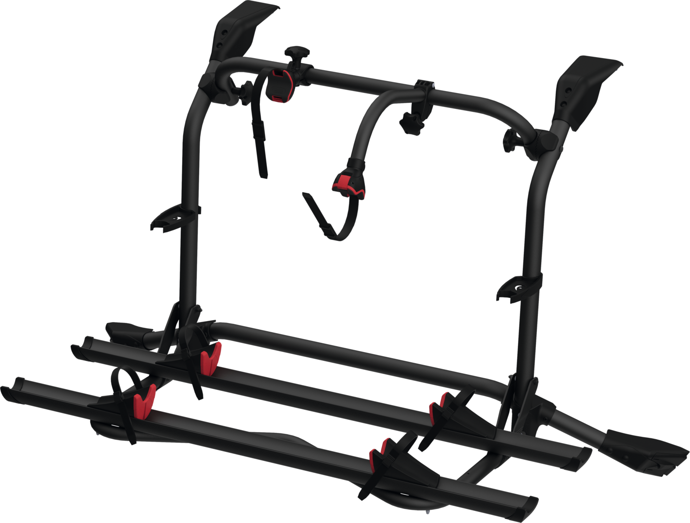 Auch für Modelle mit erhöhtem Dach geeignet. Das neue Modell 2023 ermöglicht dank Rail Plus-Schiene den Transport von max. 4 Standard-Fahrrädern oder 2-E-Bikes.