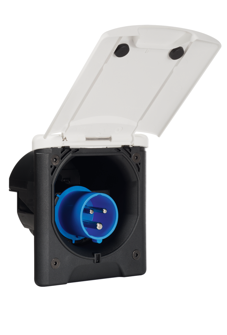 Mit rückseitigem Abdeckgehäuse. 16 A/230 V.