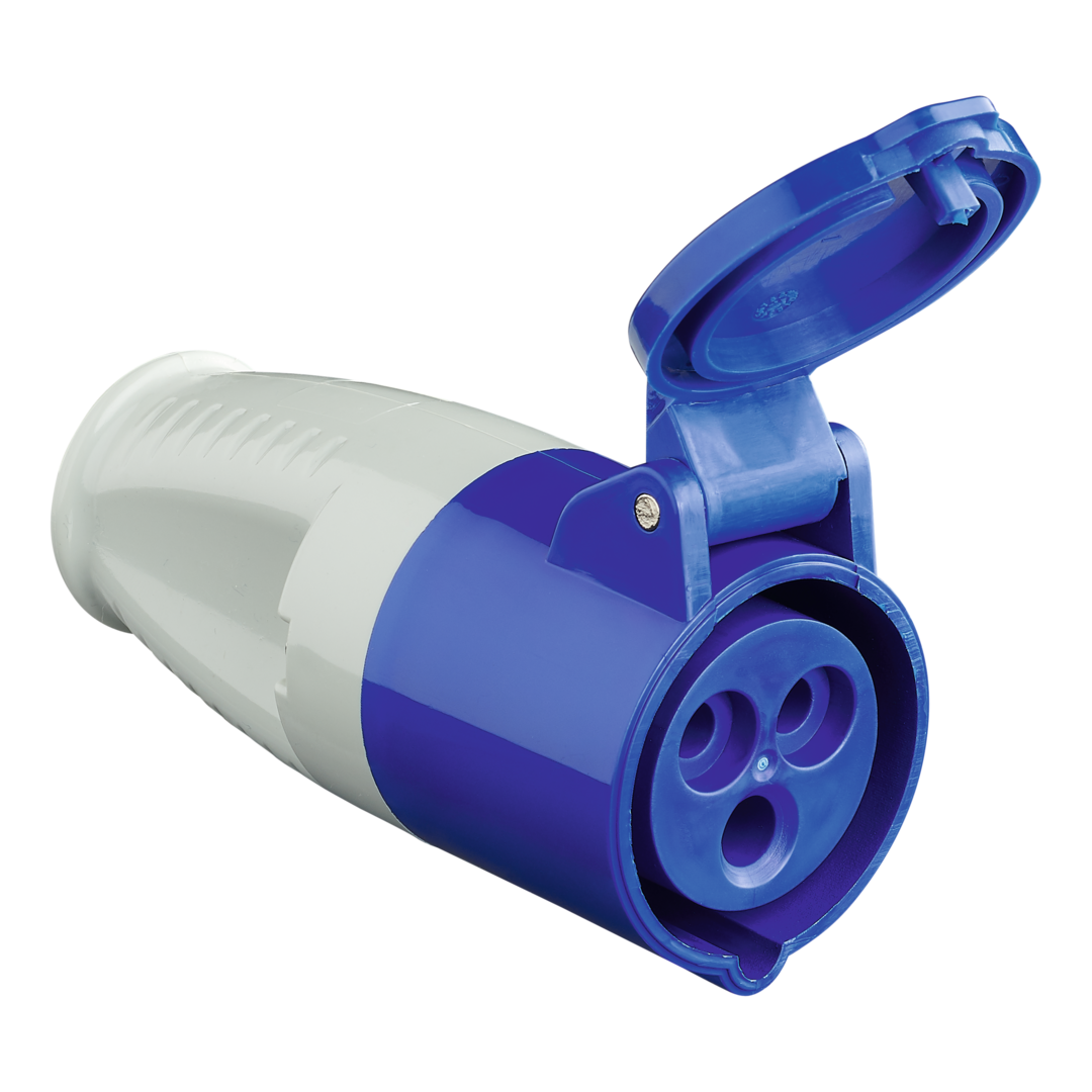 3-polig, 230 V/16 A, spritzwassergeschützt.