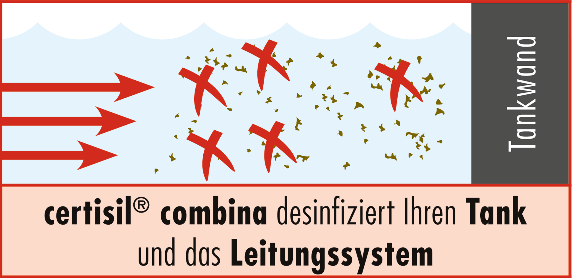Bei Stillstandzeiten Tank und Leitungen ganz mit Trinkwasser auffüllen und mit certisil® argento vor Wiederverkeimung schützen.