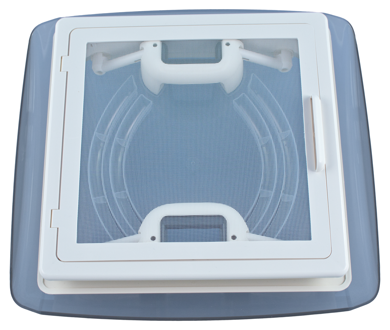 Für Dachstärken von 24 – 46 mm. Hoher UV-Schutz durch getöntes Haubenmaterial. Innenrahmen mit klappbarem Fliegennetz. Rahmenfarbe Weiß.