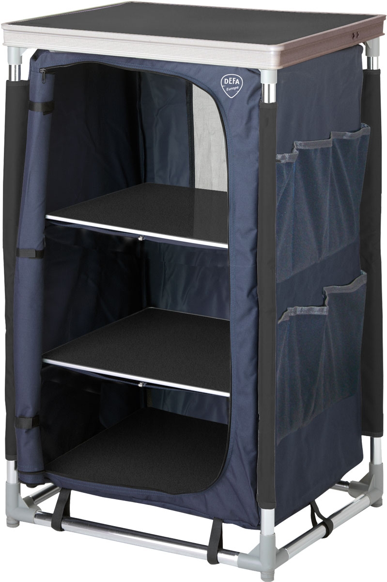 Organizer-Taschen für zusätzlichen Stauraum. Schnell auf- und abbaubar. Zusammenfaltbar. Mit 3 Innenablagen und einer obenliegenden Deluxe-Arbeitsplatte. Bezug 100 % Polyester.