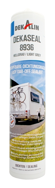 Dauerelastische, UV-beständige, abtupfbare Dichtungsmasse für jegliche An- und Aufbauteile wie Rahmen, Dachluken, Fenster, Türen, Klappen, Heki´s und Steckdosen.