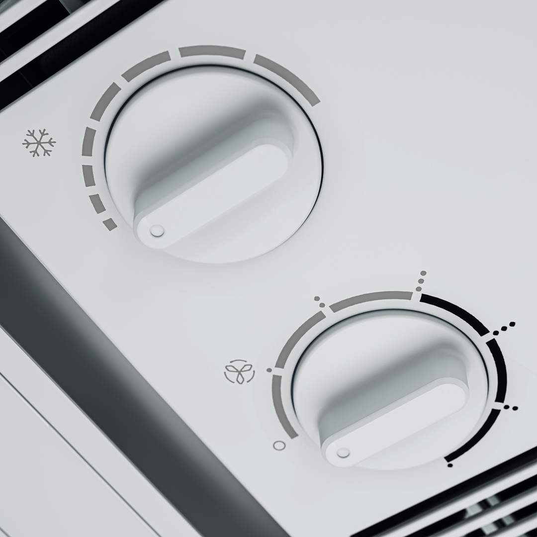Einfach die Knöpfe drehen, um Temperatur und Luftstrom anzupassen (FreshJet FJX4 1500)