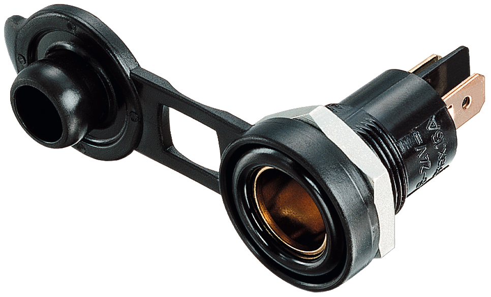Mit Flachsteckeranschluss 6,3 mm, Deckel zum Schutz vor Staub und Spritzwasser.