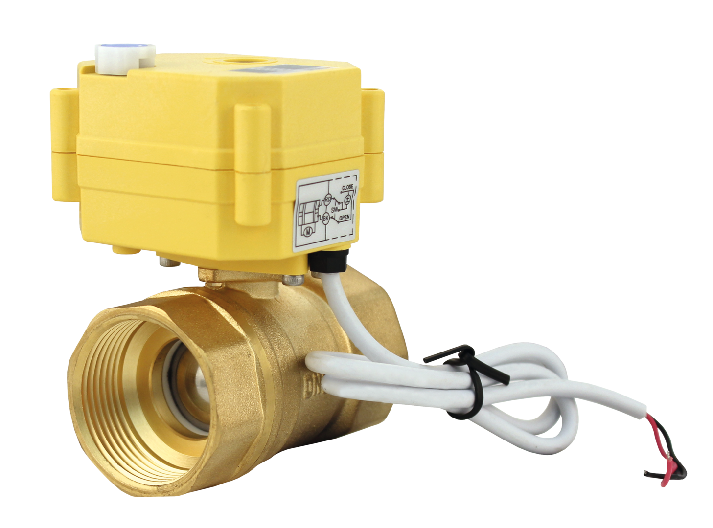 Elektrischer Kugelhahn Messing 1 ¼“. Das Ventil wird über einen 4-poligen Schalter angesteuert.