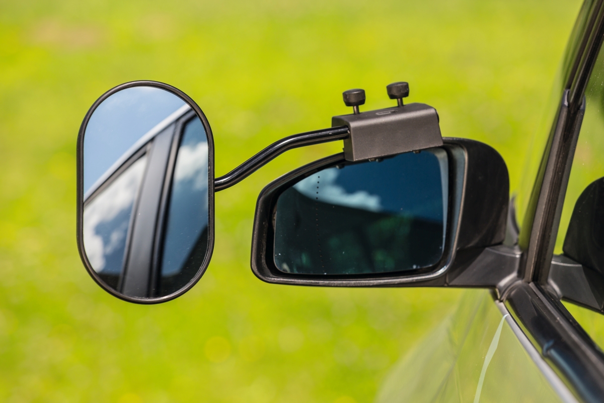 Der Wohnwagenspiegel wird mit zwei Schrauben ohne Werkzeug montiert.