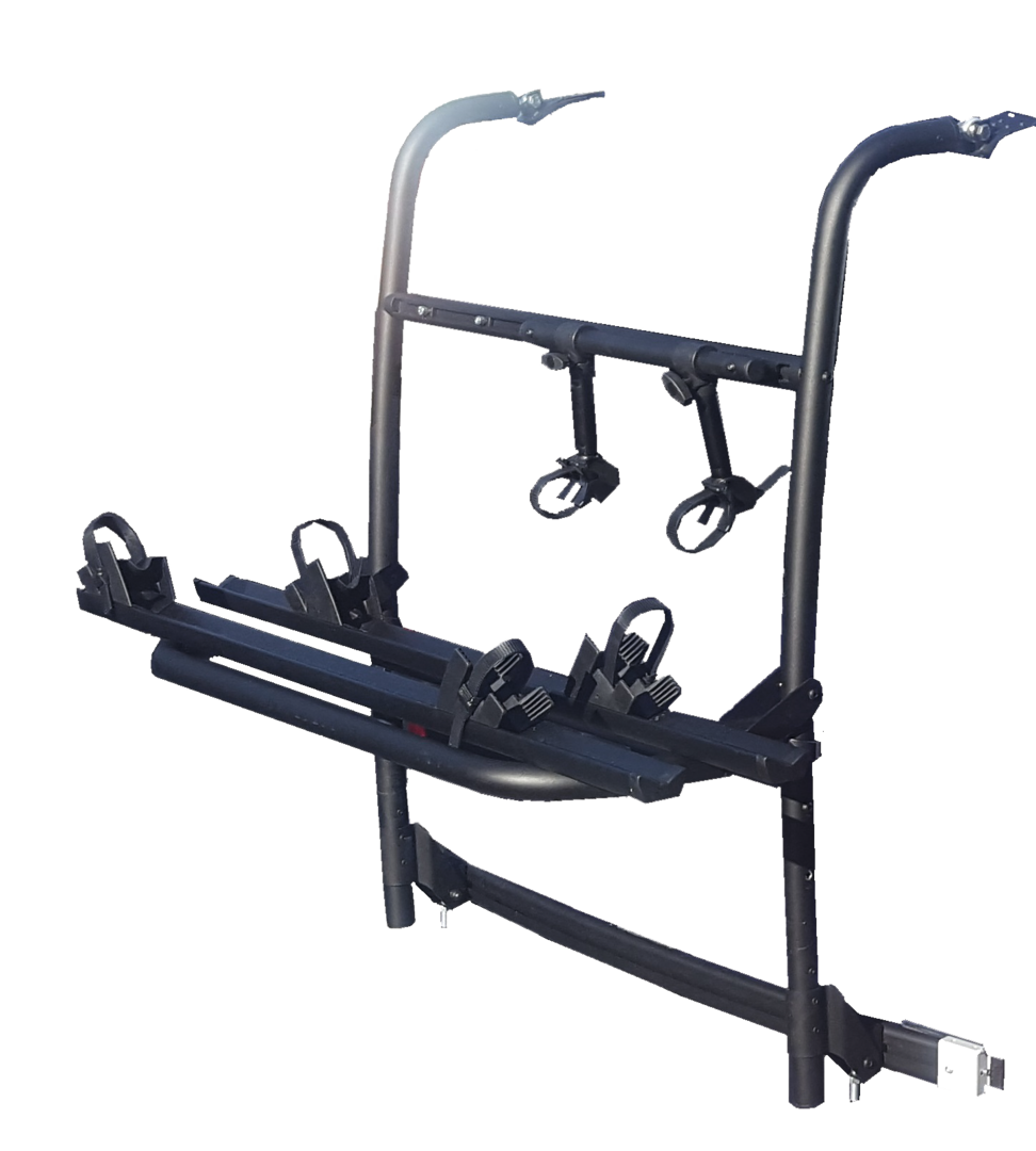 Komplett vormontierter Fahrradträger für 2 bzw. 4 Fahrräder (E-Bikes geeignet) mit einem max. Gesamtgewicht 60 kg.