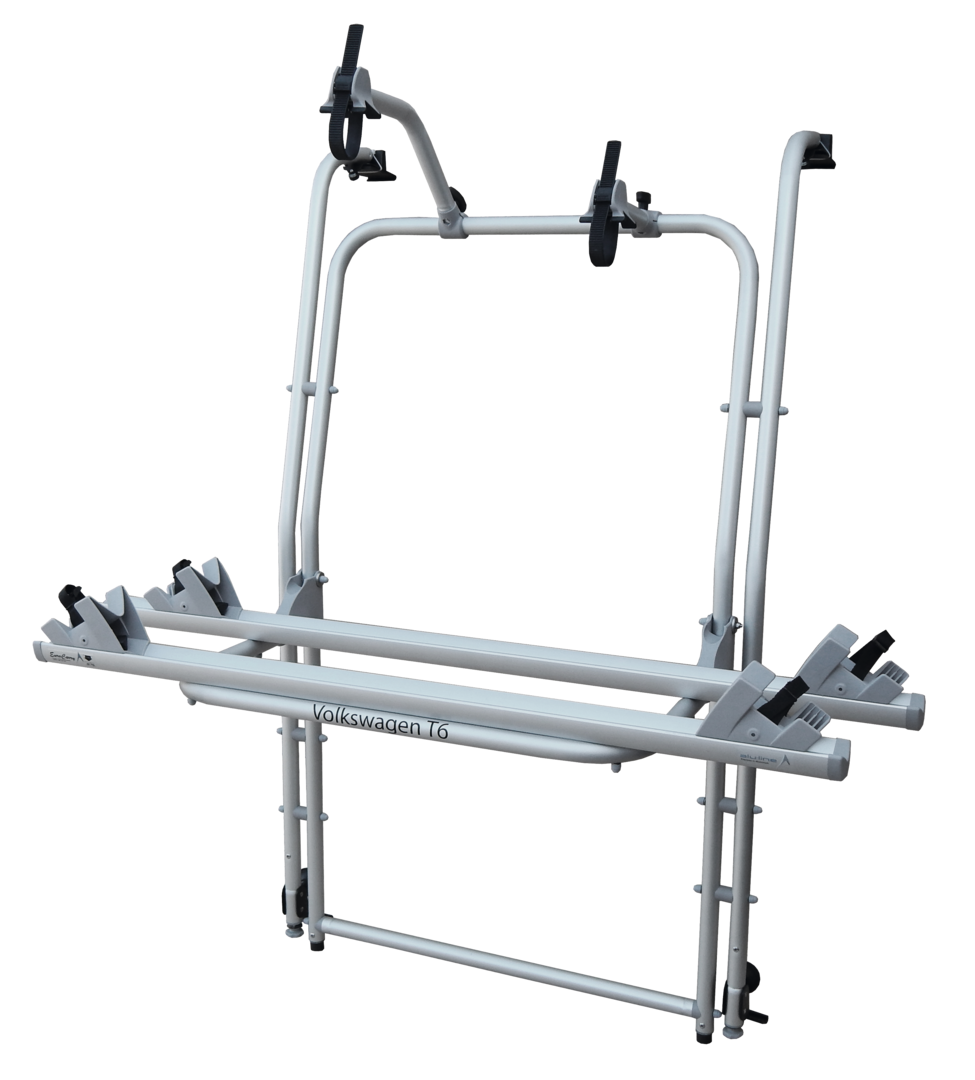 Nicht für Fahrzeuge mit Heckklappen-Zierleiste! Aluminium-Doppelrohrrahmen, 2 Aluminium Fahrradschienen mit je 2 Radschalen und Spanngurten, 2 Befestigungskrallen, 2 Spannhaltern, 2 Spannelementen. Max. Beladung bis zu 2 Fahrräder, Pedelecs oder E-Bikes möglich.