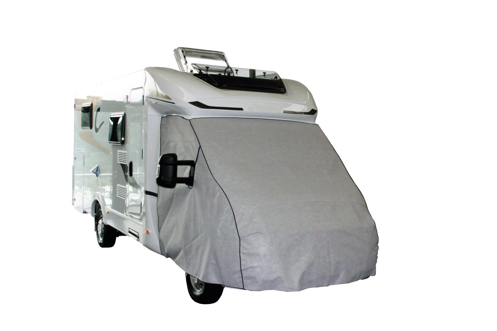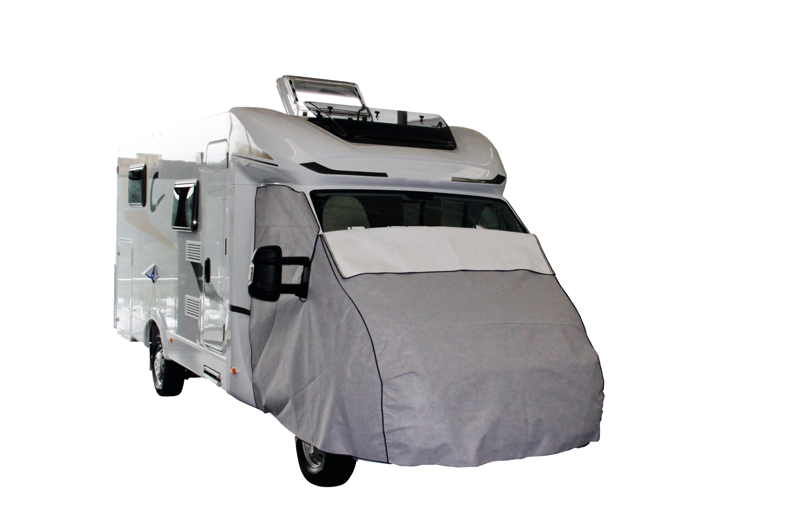 Diese Weiterentwicklung der Frontschutzplane für Reisemobile schützt das Fahrerhaus vor Vereisung und Schnee sowie ungewünschten Einblicken.