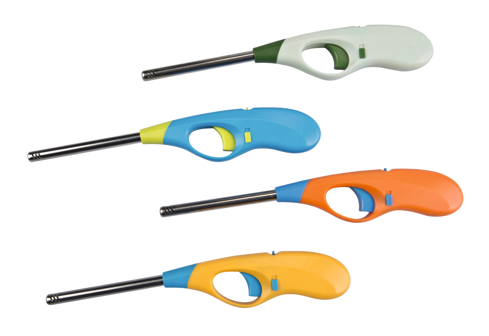 Stabfeuerzeug. Elektronisches Stabfeuerzeug mit Sicherheitssperre. Mit einstellbarer Flamme und nachfüllbar. Farblich sortiert.