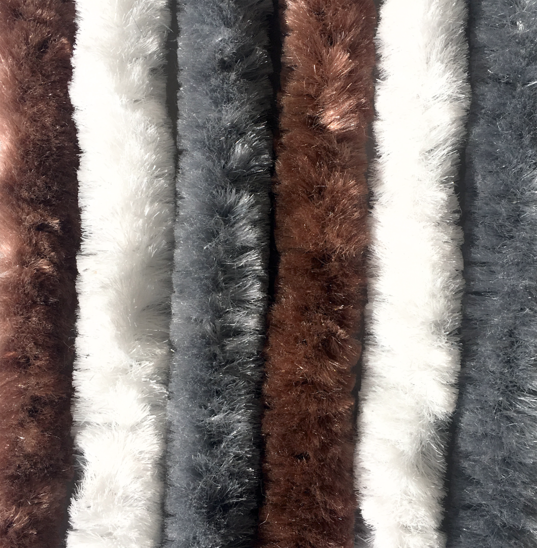 Dekorativer, praktischer Türvorhang für Caravans, Reisemobile, Zelte, Vorzelte und für Zuhause. Mit dicken, flauschigen Strängen aus künstlicher Chenille (100 % recyclebares Polypropylen). Schützt sicher vor lästigen Fluginsekten, Sonneneinstrahlung und unerwünschten fremden Einblicken. Inklusive Tragetasche.