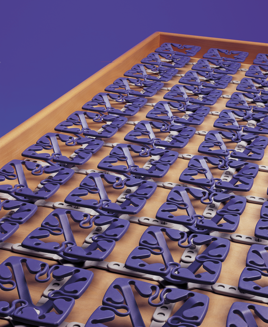 Variables Clipsystem, das individuell für jedes Bettenmaß in drei Abständen und Härtegraden zusammengefügt wird.