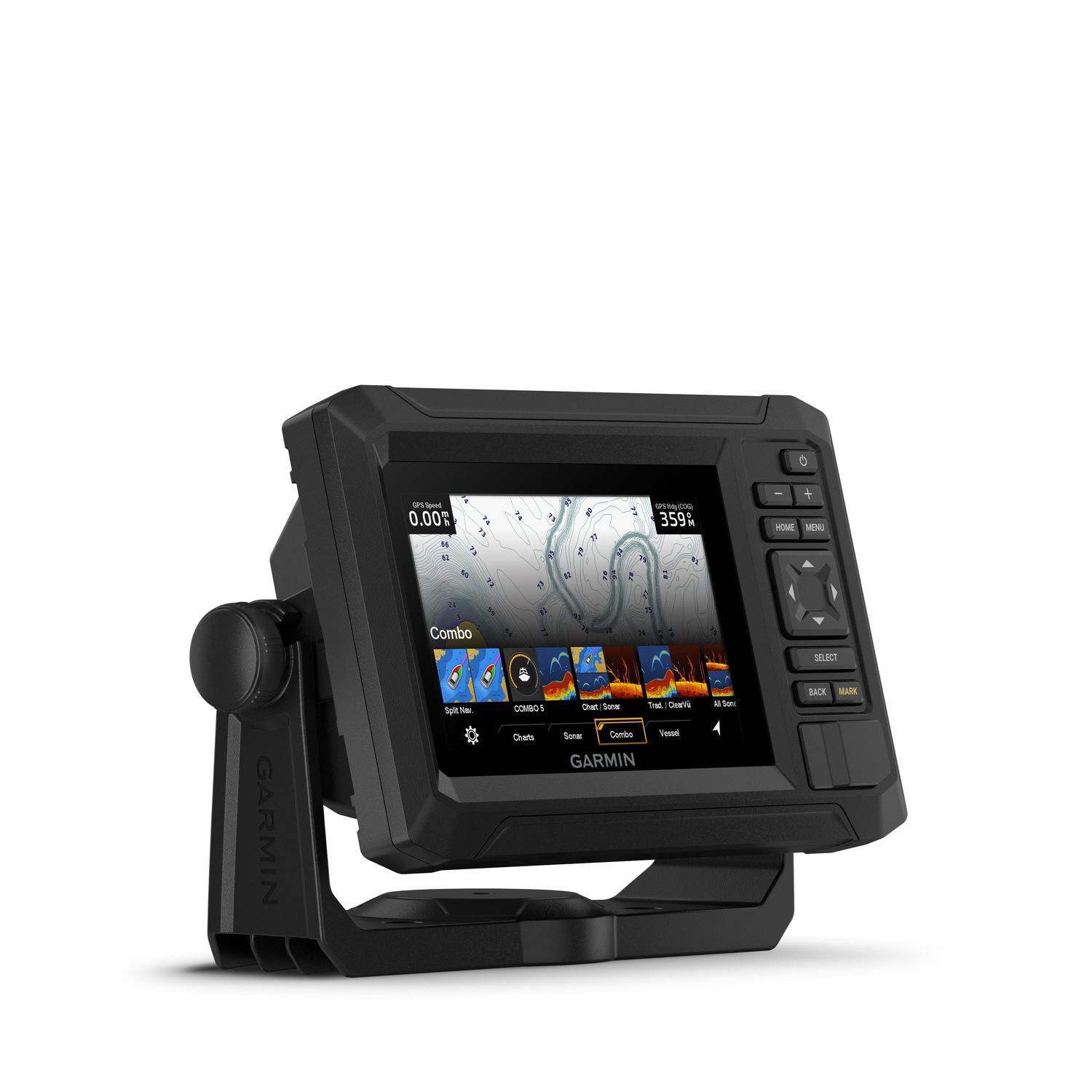Fishfinder/Kartenplotter Kombigerät mit 5“ großem Farbdisplay und innovativer Tastaturbedienung.