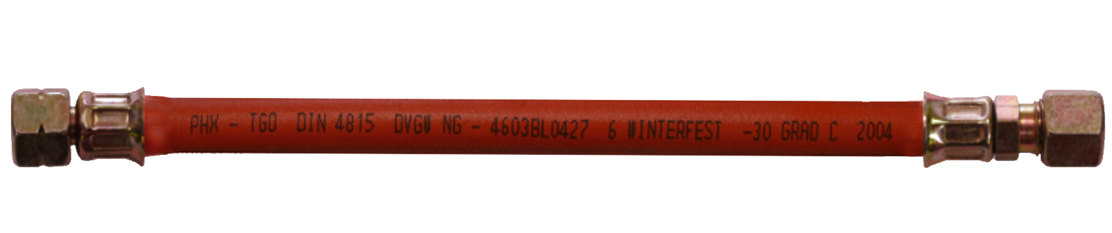 Mit Verschraubung nach DIN 4815, zum Anschluss an alle Gasregler. Eine Seite ¼“ Linksgewinde,