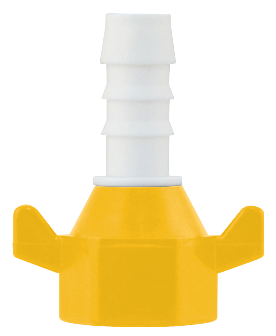 Gerade-Aufschraubtülle-WeißGELB®. Zum Aufschrauben auf LILIE-Druckwasserpumpen mit ½“-Außengewinde. Durchflussoptimiert, für barrierefreien Wasserfluss. Anschluss ½“-Innengewinde.
