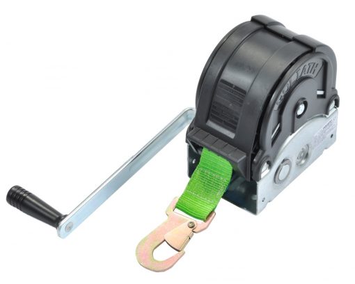 Wichtige Herstellerangaben: GOLIATH Trailer Sicherheitswinden komplett mit Gurt und Haken. Verzinkt mit Kunststoffabdeckung und abnehmbarer Kurbel. Die angegebenen Zuglasten bezieht sich auf eine Steigung von 20%.; Die integrierten Sperrklinken verhindern ein Lösen, auch wenn die Kurbel los gelassen wird.