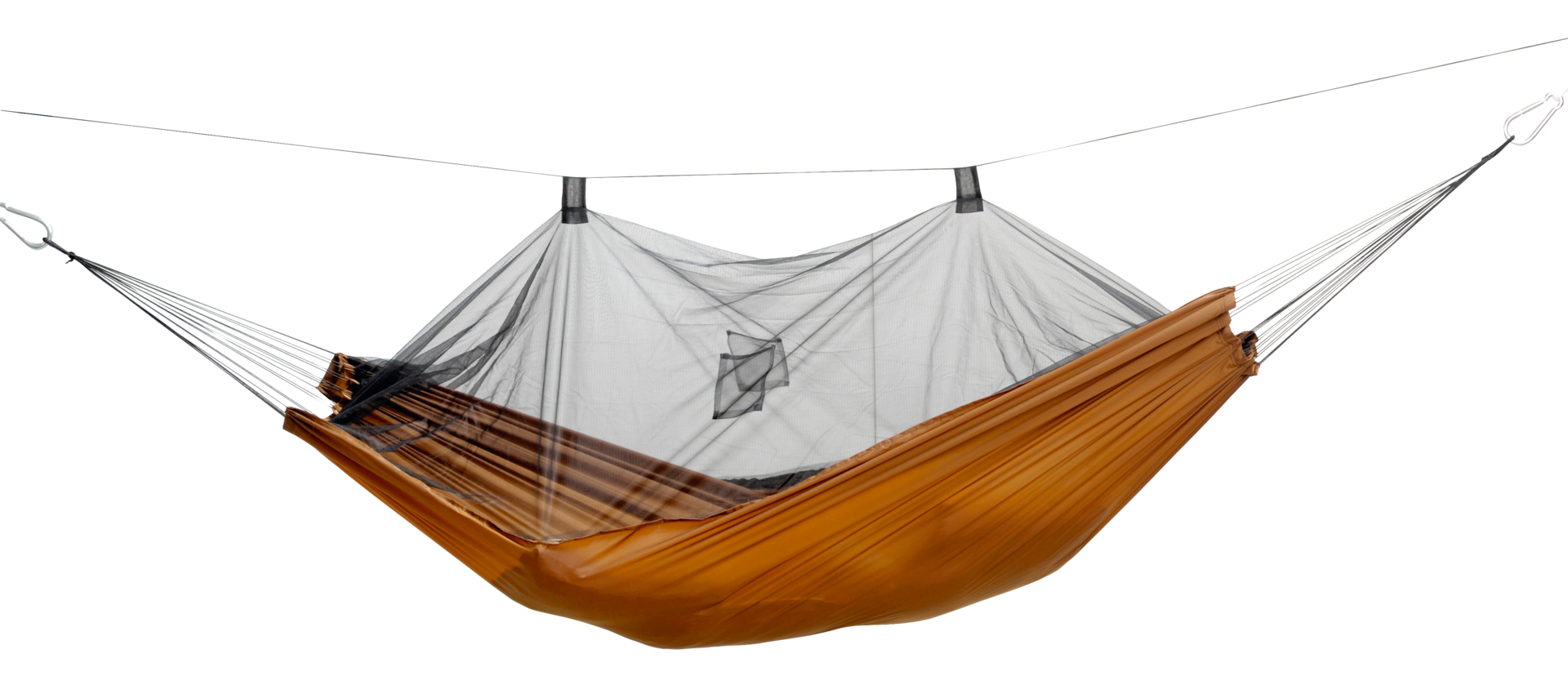 Eine mit Insektenschutzmittel (TANATEX Chemicals) imprägnierte Hängematte mit integriertem Moskitonetz, das jede Art von Insekten fern hält und so noch besser schützt. Dabei ist die Imprägnierung nachweislich für Menschen vollkommen unbedenklich, hautfreundlich, geruchsneutral, hitzebe-ständig und waschfest (bis 50 Waschgänge). Der Einstieg erfolgt seitlich durch einen Reißverschluss, mit dem beiliegenden Seil wird das Netz vom Körper abgespannt. Material: 100 % extra stabiles Polyester. Gesamtlänge ca. 350 cm.