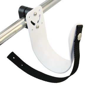 Wichtige Herstellerangaben: Halter für Rettungsringe aus weiß beschichtetem Aluminium mit Nylonsicherung zur Montage am Heckkorb.