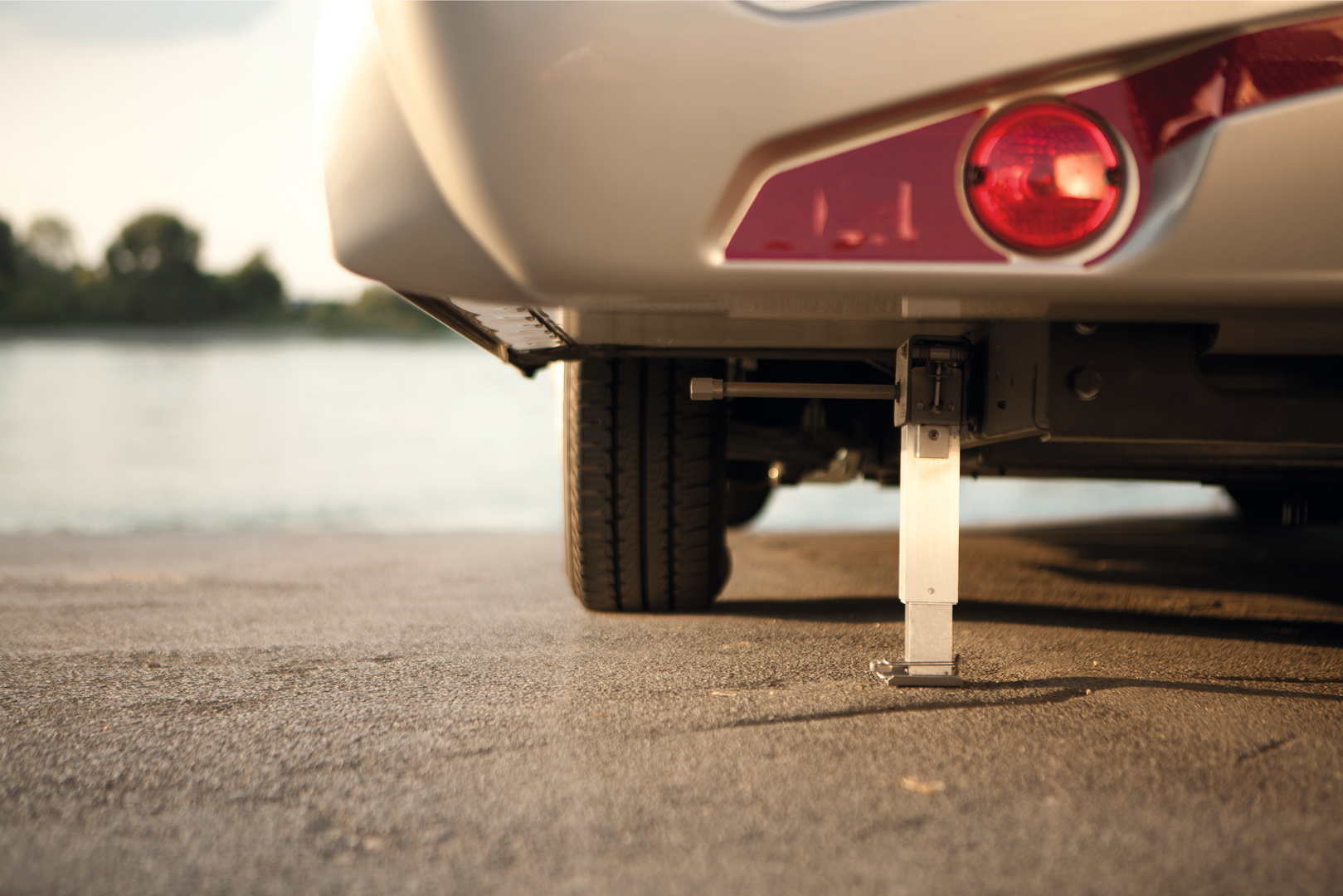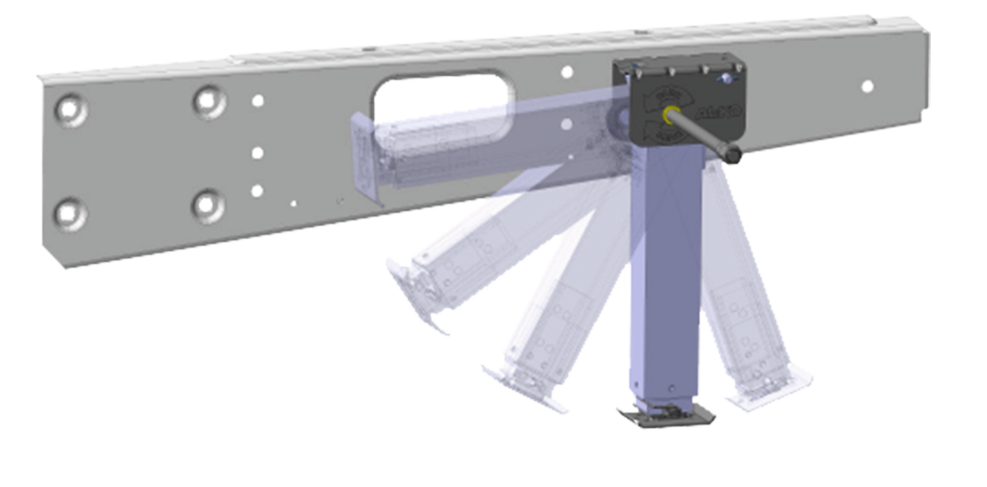 Freischwenkmechanismus: Wird das Reisemobil trotz ausgefahrener Stütze bewegt, klappt diese selbstständig nach vorne oder hinten, um mögliche Beschädigungen von Stütze oder Fahrzeug zu vermeiden.