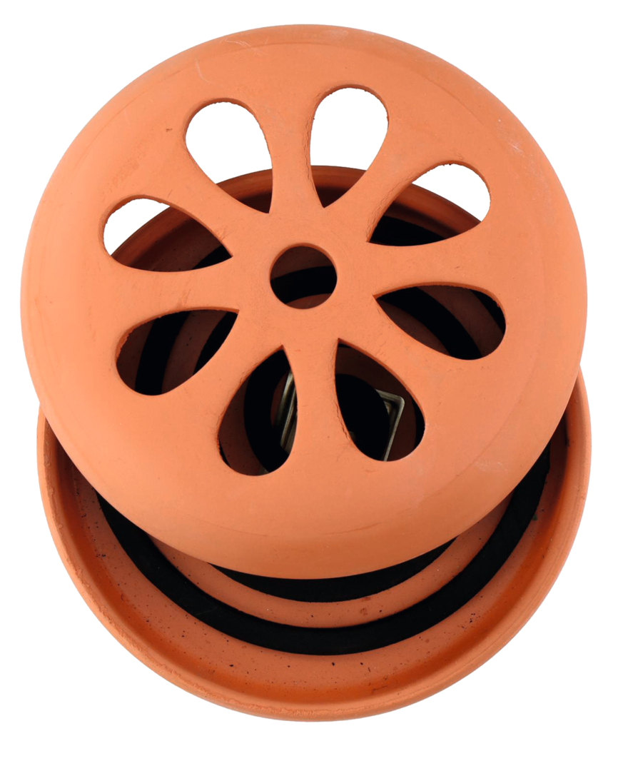 Insektenspiralen – Terrakottatopf. Mit Wirkstoff Esbiothrin, gefahrloses Abbrennen, Rauch entweicht durch spezielle Öffnungen, inklusive zwei Insektenspiralen.