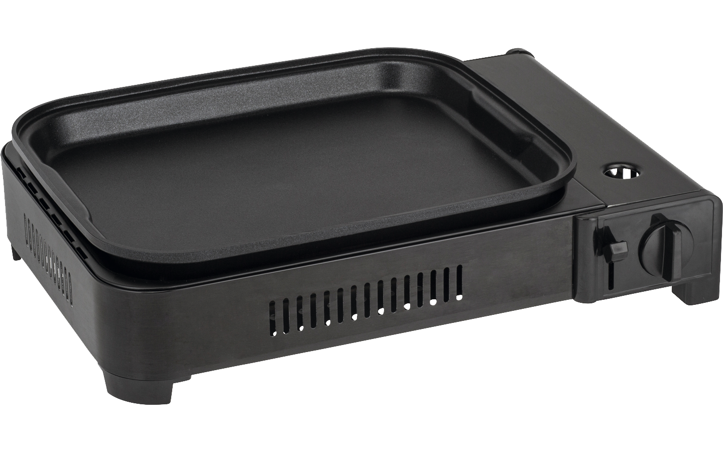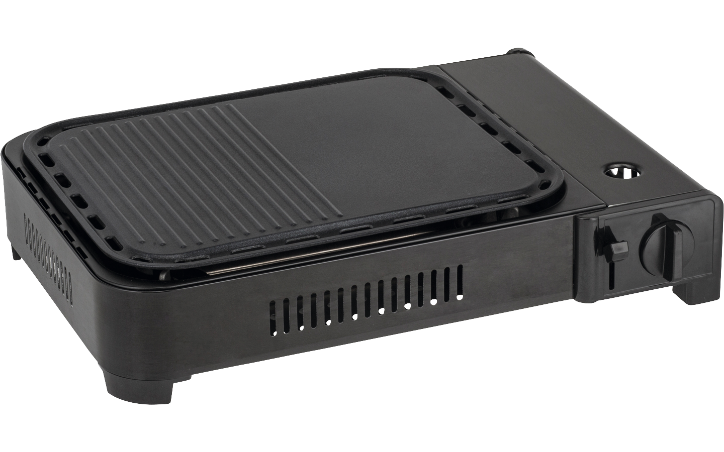 Erstklassiger Tisch-Gasgrill mit pulverbeschichtetem Metallgehäuse und leistungsstarkem Doppelrohrbrenner mit integrierter Piezozündung. Große Kochfläche.