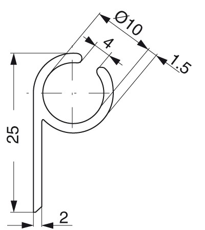 | ER87200 | Kederschiene aus Aluminium, P-Form, 600cm lang |