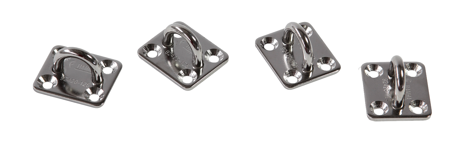 Haken aus Edelstahl zur Befestigung am Boden oder an der Wand.