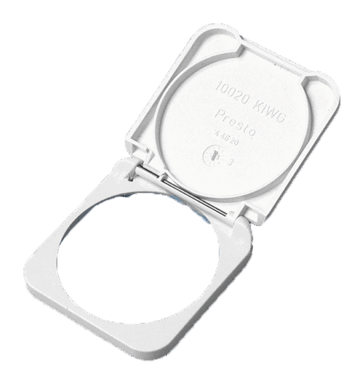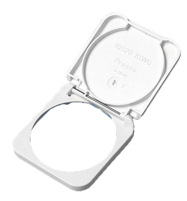 Abdeckung mit integriertem Klappdeckel mit Feder.