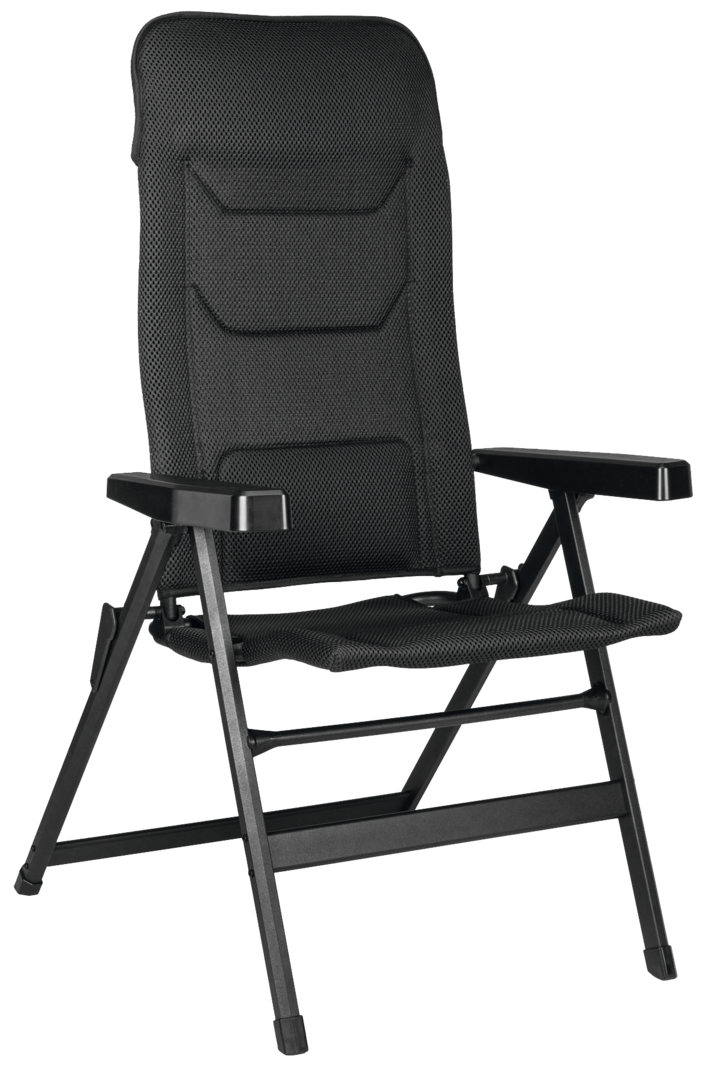 Klappsessel mit pulverlackiertem Aluminium-Gestell, atmungsaktivem FULL-3D Bezug (100 % Polyester) und metallverstärkten Armlehnen zur Rückenlehnenverstellung. Ausgesprochen stabile und platzsparende Konstruktion, gepaart mit modernem, funktionellem Design.