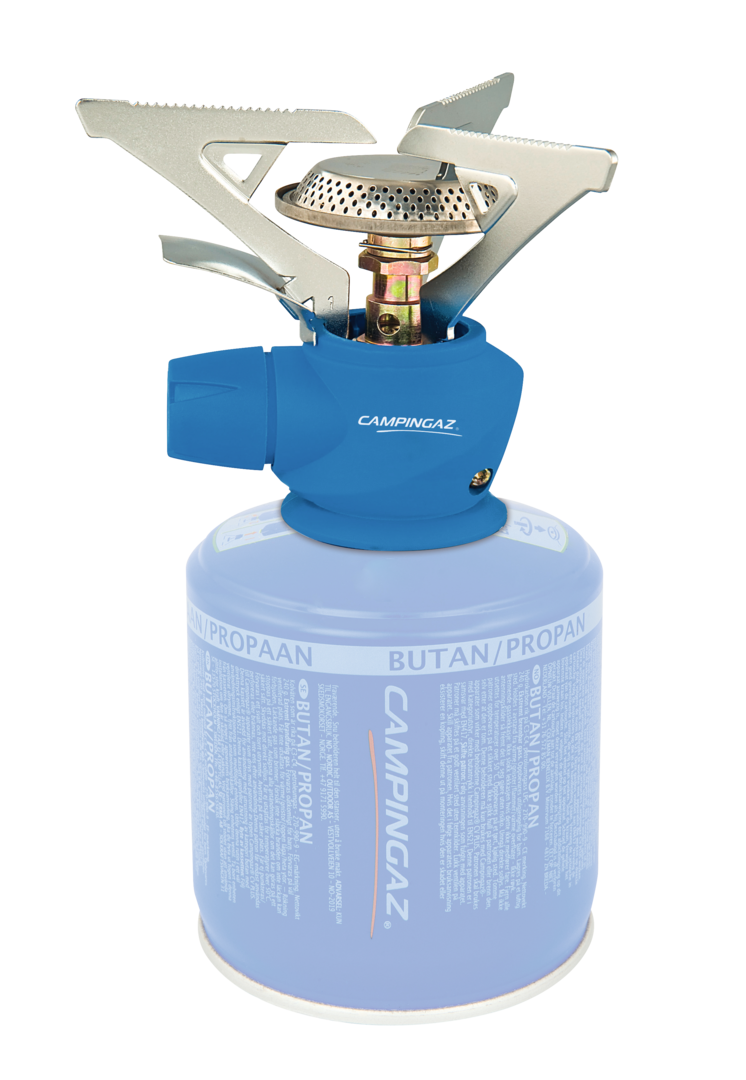 Kocher Twister® PLUS. Kompakter Ventilkartuschenkocher mit der einfachen Easy Clic® Plus-Verbindung. Verlängerte Topfträger mit integriertem Windschutz. Hitzeschild schützt die Hand bei der Bedienung des Regelknopfes. Mit Transportbox. Leistung 2.900 W. Verbrauch 210 g/h. Brenndauer 2 h (CV470 Plus).