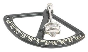 Wichtige Herstellerangaben: Pendelkrängungsmesser aus schwarzem Kunststoff mit verchromten Pendel. Anzeige bis 50° Krängung