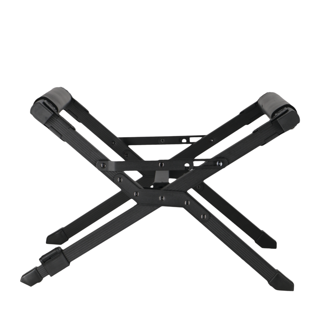Komfortabler, klappbarer Kühlboxen-Ständer aus robustem Alu-Vierkantrohr mit Bodenschonern und gepolsterten Auflageprofilen.