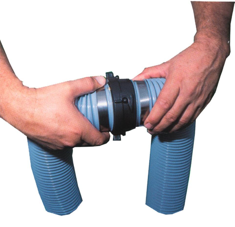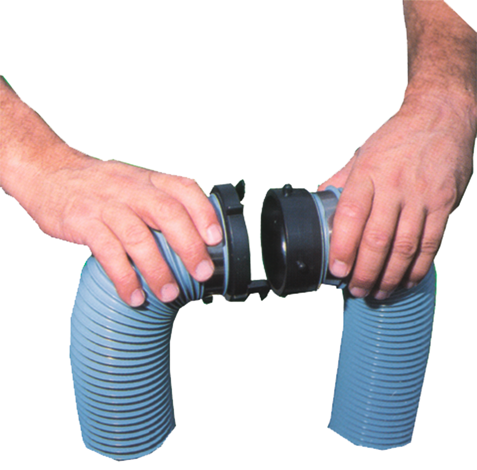 Schnell-Kupplungsset 3″. Bestehend aus zwei Bajonett-Anschlussteilen und zwei Schellen.