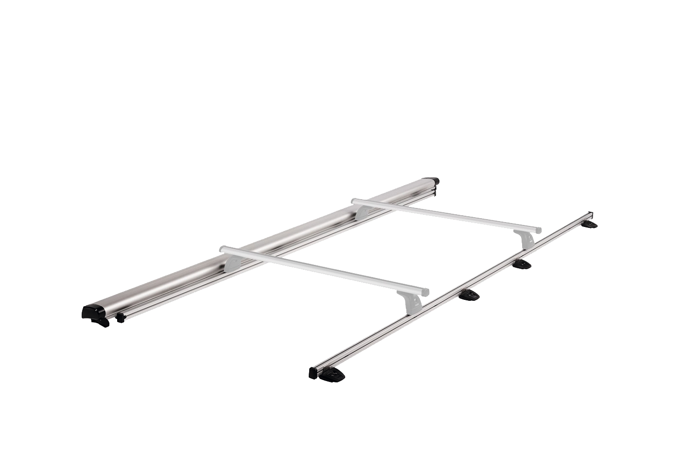 Set bestehend aus Dachträger-Basisschienen und Adaptern für die Montage einer Thule-Omnistor 6300.