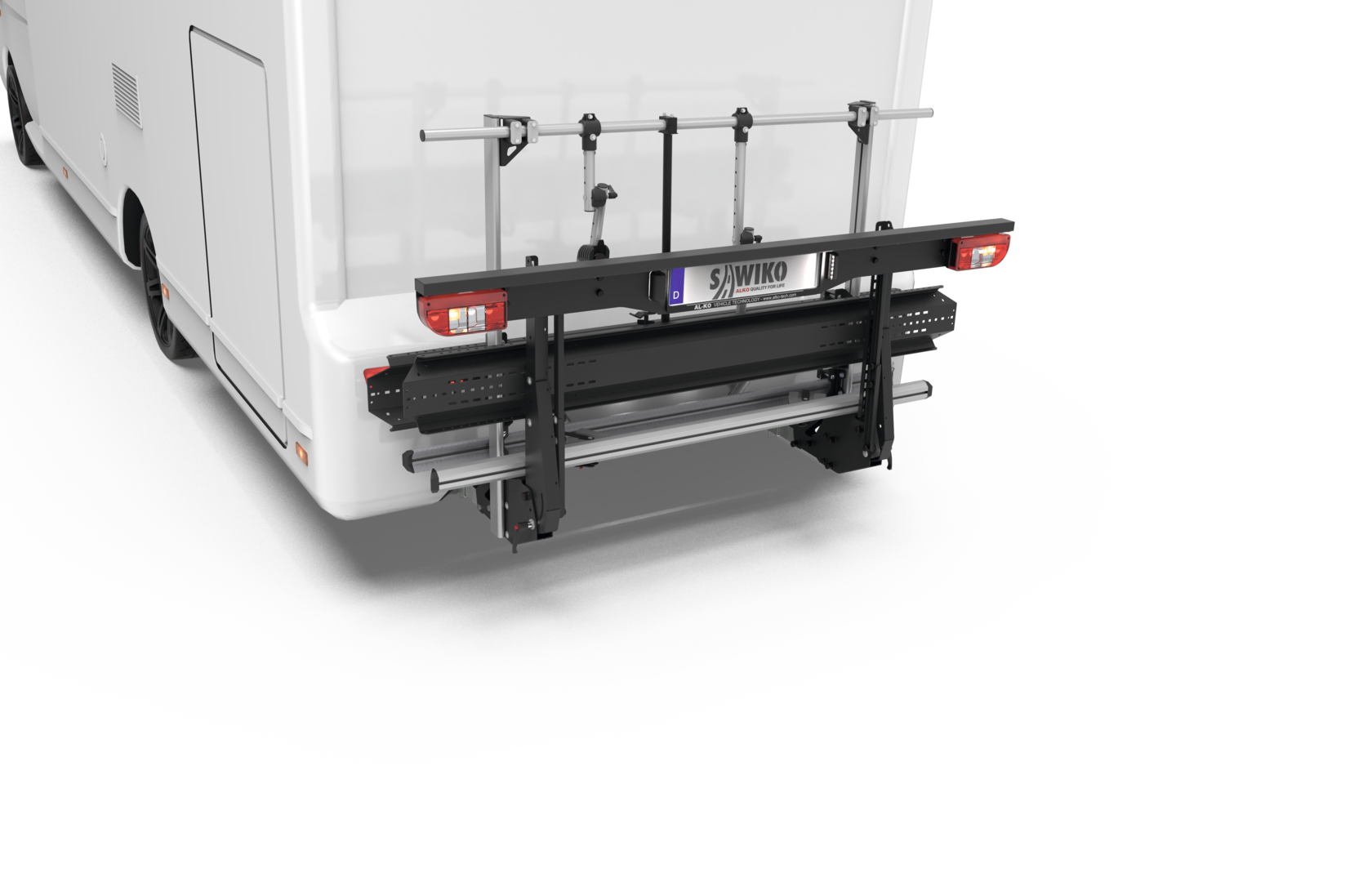 Fahrräder und Roller sind auch spezielle Rüstsätze für Fat Bikes und Tricycles erhältlich. Dank hochwertiger Materialien zeichnet er sich durch ein geringes Eigengewicht und eine hohe Nutzlast von bis zu 150 kg* aus. Mit der hochklappbaren Transportplattform und dem automatisch anklappenden Leuchtenträger bietet der VARIO eine mühelose Handhabung.