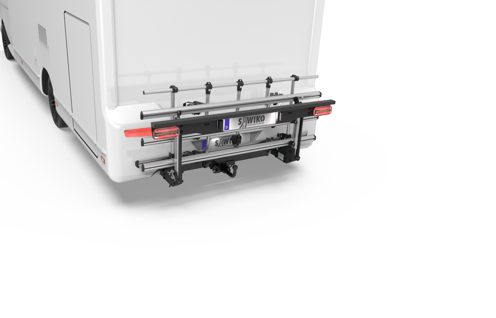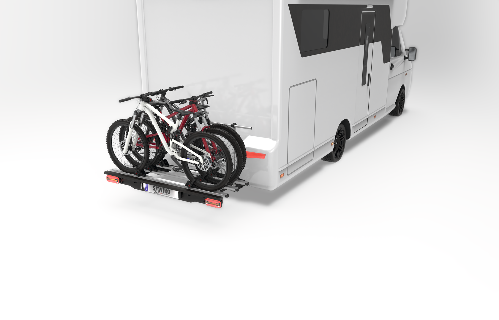 Trotz seiner leichten Bauweise ist der VELO sehr stabil. Direkt am Rahmen des Reisemobils befestigt, ist er stabil montiert und ermöglicht so eine hohe Nutzlast von max. 80 kg* die ausreicht um bis zu 3 Fahrräder oder E-Bikes sicher zu transportieren. Die Transportplattform des VELO lässt sich mühelos hochklappen. Das spart bei Nichtgebrauch Platz. Dank des neuen
