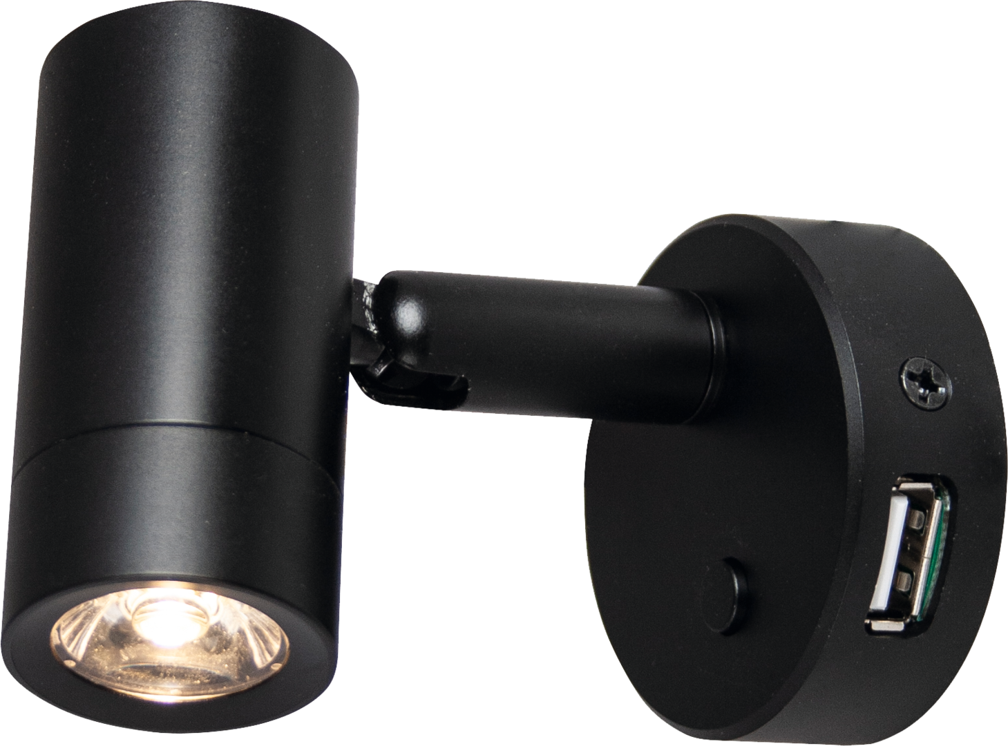 LED-Leuchte mit USB-Anschluss. Spannung 12 V. Leistung 1,5 W. Lichtfarbe 3000 – 3200 K. Länge 8,5 cm, Leuchtenkopf ø 3 cm, Sockel ø 5 cm.