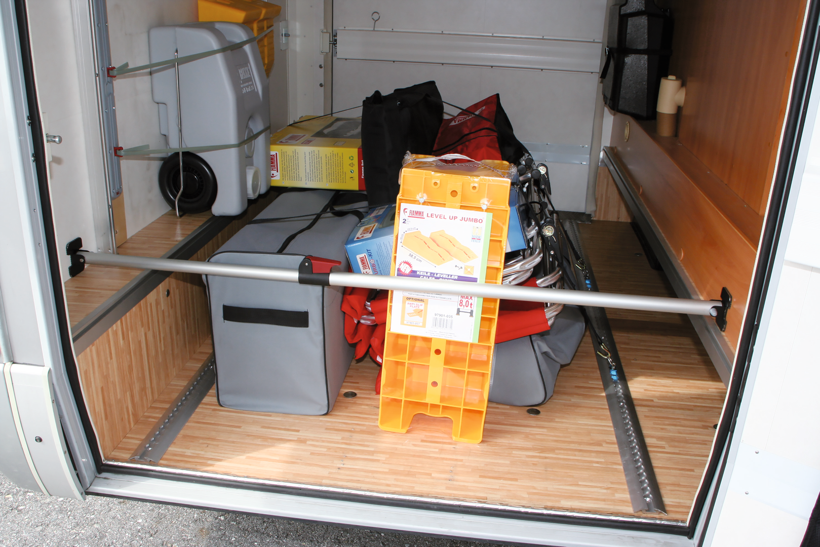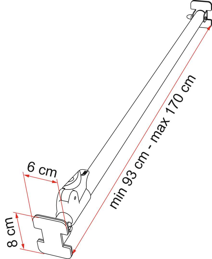 Solide Teleskopstange aus eloxiertem Aluminium, ideal um Gegenstände während der Fahrt im Inneren des Fahrzeugs oder der Heckgarage zu schützen.