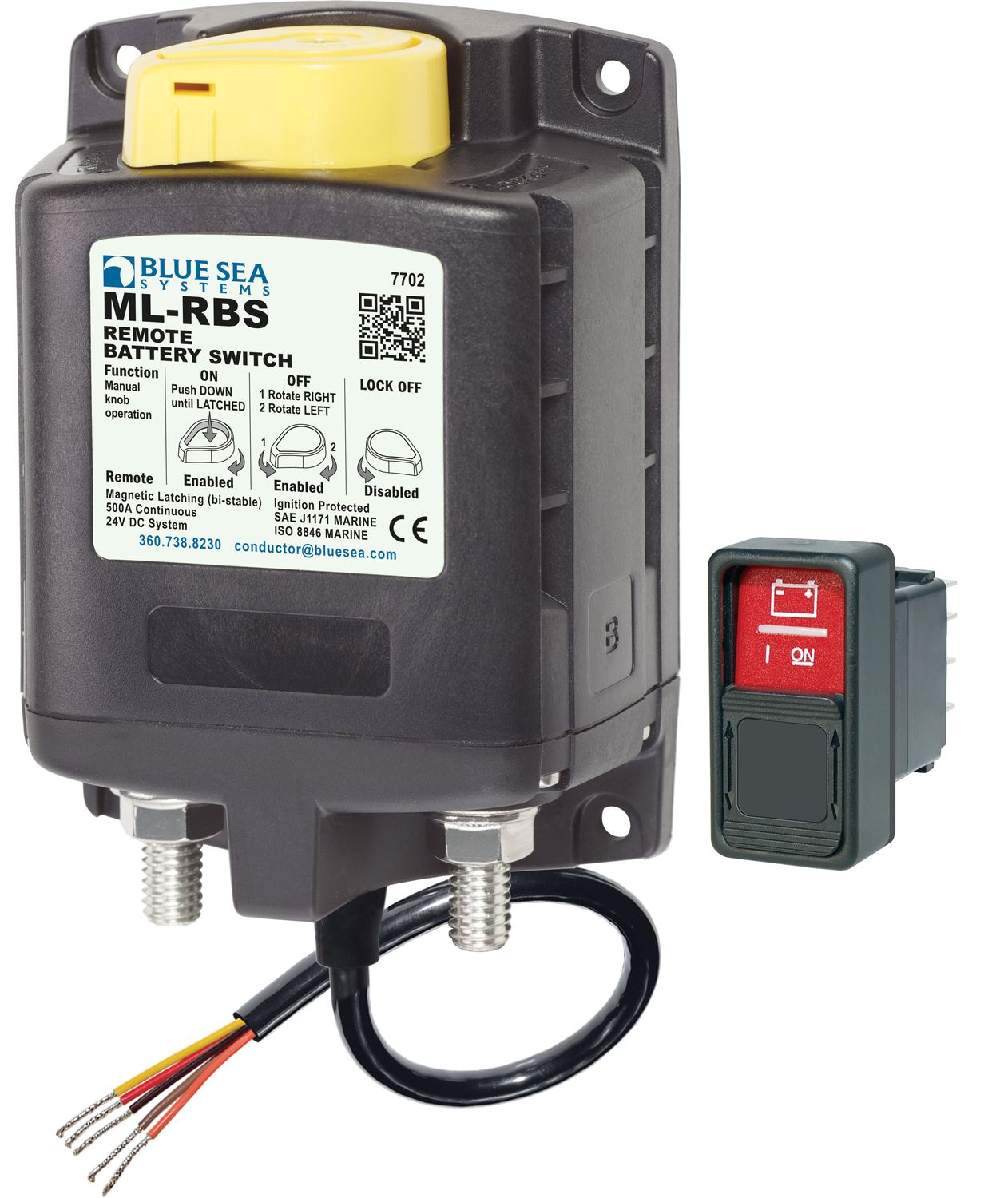 Fernschaltbarer Batteriehauptschalter. Montiert in Batterienähe erspart er lange und kostenintensive Kabelwege. Der Fernschalter ist nach IP66 feuchtigkeits- und korrosionsgeschützt.