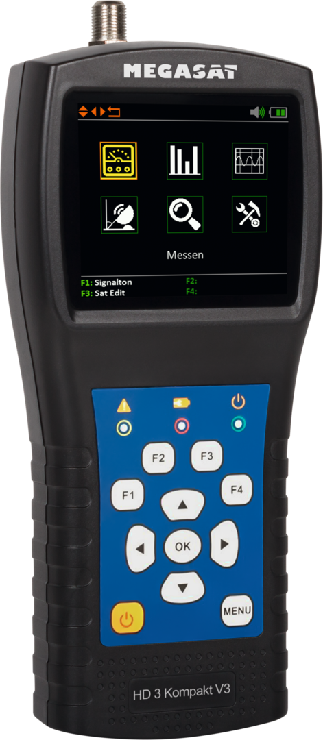 Das HD 3 Kompakt V3 ist ein handliches Messgerät und bestens für eine schnelle und genaue Satellitensuche geeignet. Möglich ist die Messung von DVB-S und DVB-S2 (HD) Signalen. Das eingebaute LCD Display bietet eine Bildschirmdiagonale von 2,7″ (6,9 cm). Die Bedienung ist mit der übersichtlichen und klar strukturierten Bildschirmoberfläche ein Kinderspiel. In der Live-Messung werden alle wichtigen Informationen wie z. B. Satellit, Transponder, C/N, BER und dBµV angezeigt. Um das Signal der Sat-Anlage zu beurteilen und evtl. Empfangsfehler zu analysieren, nutzen Sie die in nahezu Echtzeit laufende Spektrumanalyse. Durch die ständig aktualisierte Darstellung des Diagramms wird bei Bewegung des Spiegels, das Spektrum sofort verändert. Die Winkelberechnung hilft Ihnen den vertikalen und horizontalen Winkel der Antenne zu ermitteln. Geben Sie einfach die Daten des Standorts ein und das Messgerät errechnet schnell die passenden Winkeleinstellungen für den Spiegel.