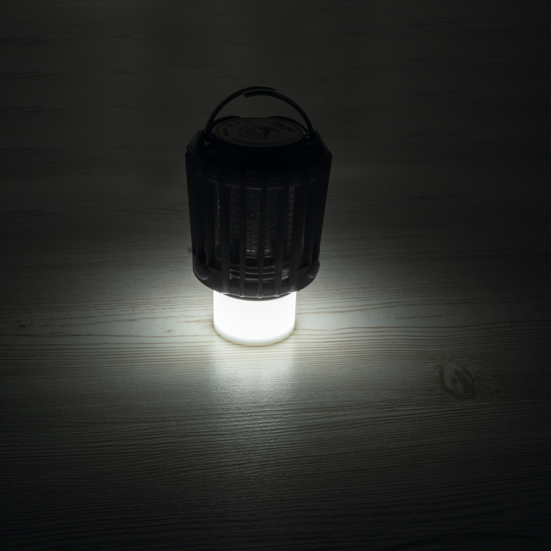 Praktische LED-Außenleuchte mit Doppelfunktion: Licht/Moskito-Killer mit wiederaufladbarer Lithium-Batterie. Kann mit dem